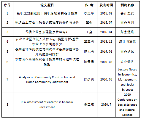 建院以来,在全院师生的共同努力下,学院目前已拥有省级特色专业1个—会计学,省级大学生实践基地2个—民生证券、正鉴财税实习基地,省级实验教学示范中心1个—经管实训中心,省级精品视频公开课1门—基础会计。近5年来,我院教师共公开发表论文138篇,其中核心论文8篇,出版教材、专著17部,获批市厅级以上教科研项目14个。