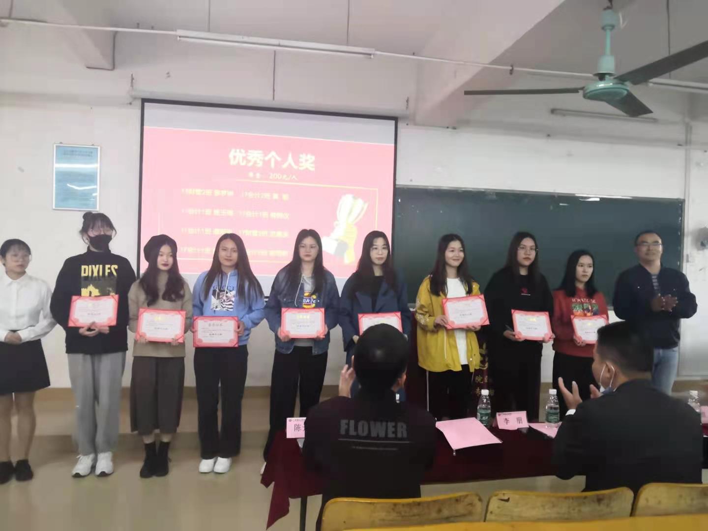 彭康煜书记宣读《关于表彰2020年正鉴优秀实习学生的决定》,事务所张岚、王林增经理为获奖学生颁发证书及奖金。曾善雅、李诗静、李嘉雯、梁权获标兵个人奖,奖金为600元/人;黎梦琳、黄蓉、杨玉梅、熊锦仪、谭斯琳、范嘉芙、郭婉玲、谢明朗获优秀个人奖,奖金为300元/人。