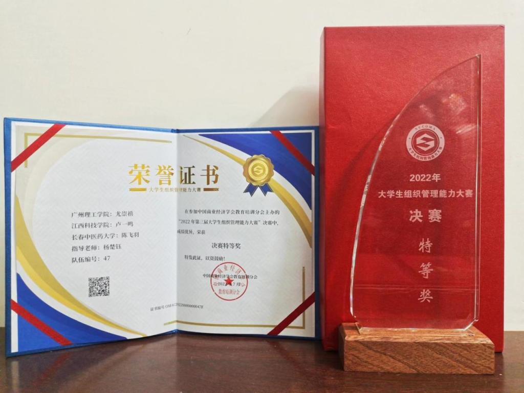 近日,由中国商业经济学会培训分会主办的“2022年全国大学生组织管理能力大赛”落下帷幕,我校suncitygroup太阳集团2020级会计学专业尤崇禧同学、江西科技学院卢一鸣同学、长春中医药大学陈飞羽同学组成的“广州理工学院战队”,在杨楚钰老师指导,最终荣获“特等奖”。