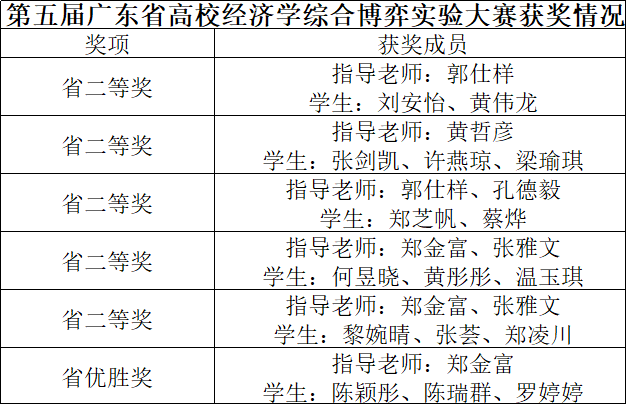 (通讯员:郑金富)为贯彻落实党的二十大精神和全国教育大会精神,全面提升高校经济学科人才培养质量,培养大批高素质创新人才和技术技能人才。2023年11月25日,由广东省本科高校经济学类专业教学指导委员会主办,广东工业大学承办的第五届广东省高校经济学综合博弈实验大赛决赛于成功落幕。