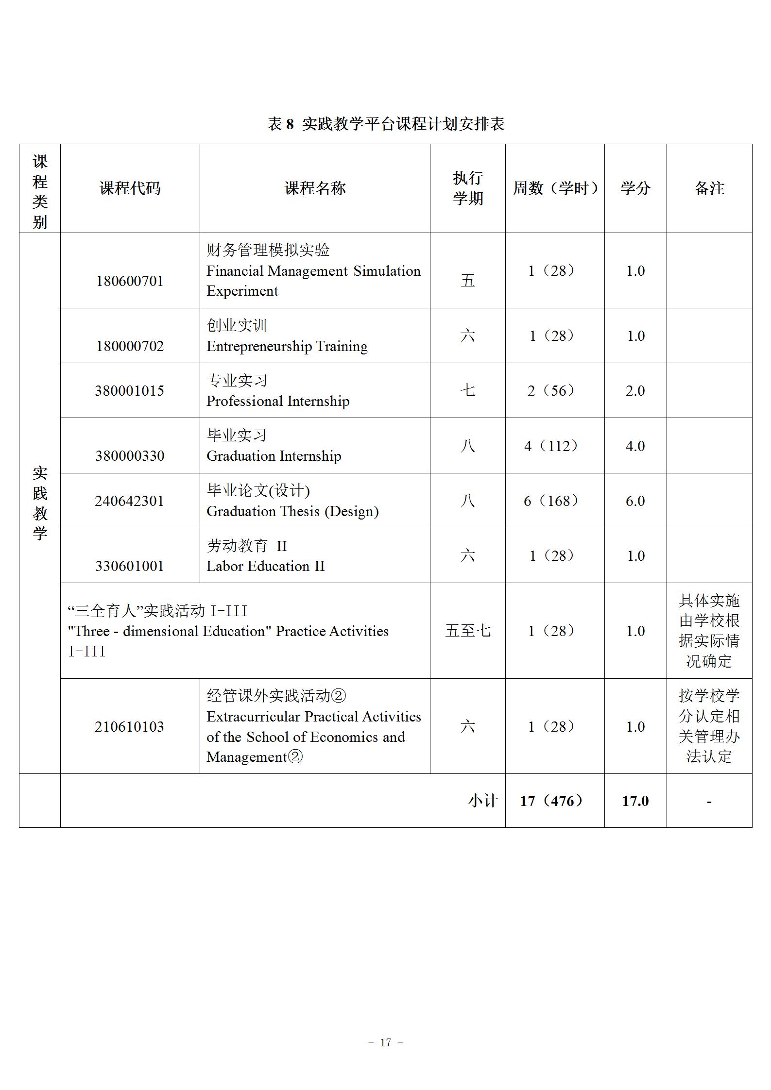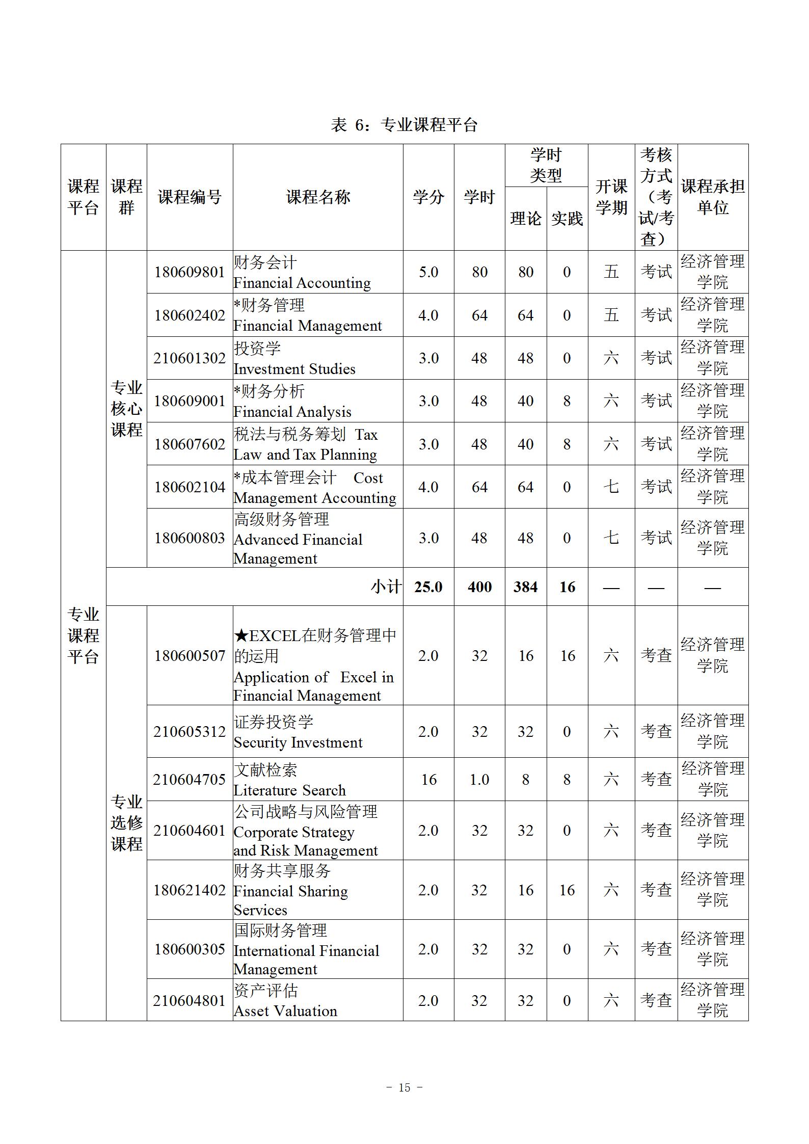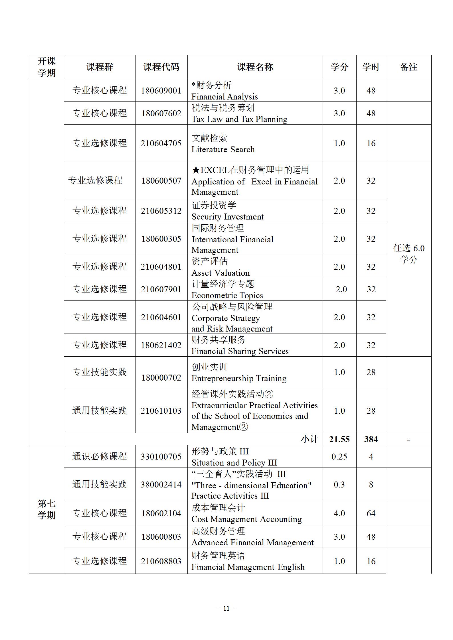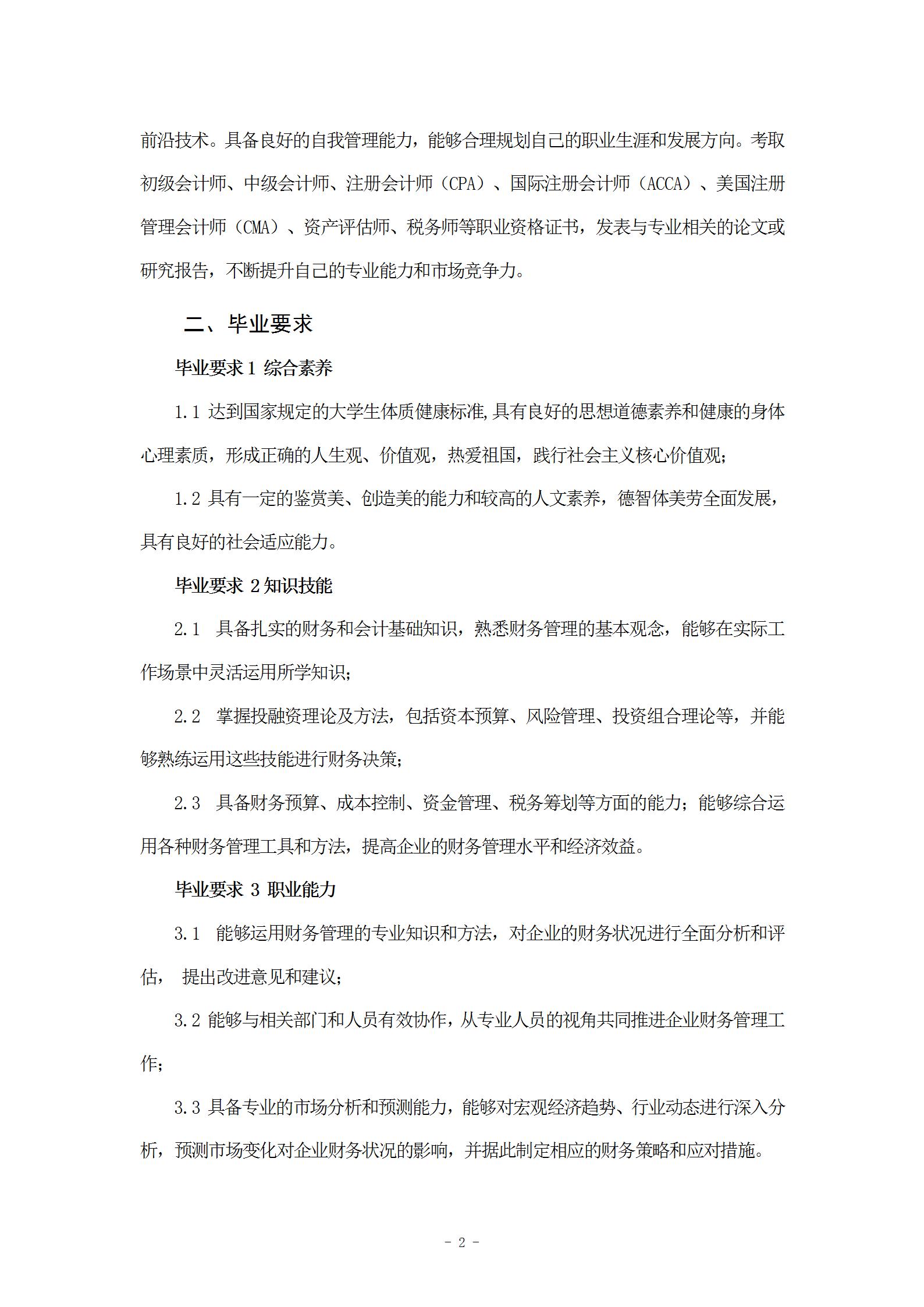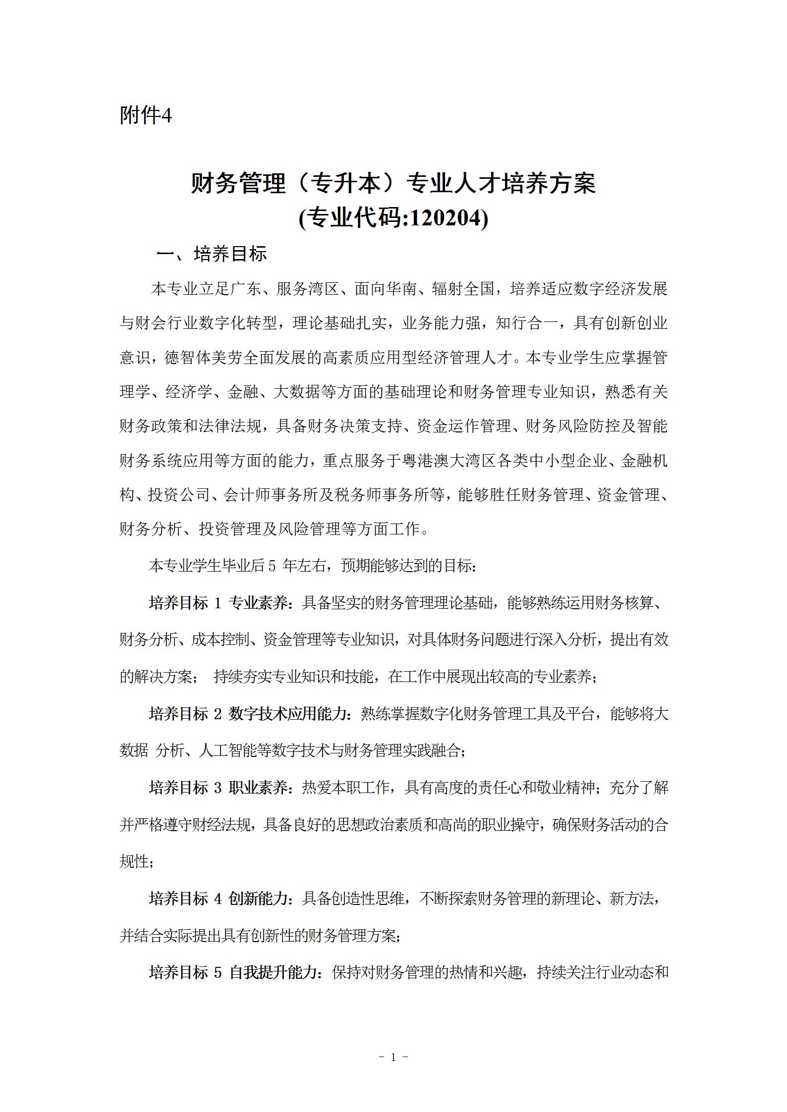 财务管理(专升本)专业人才培养方案 (专业代码:120204)
