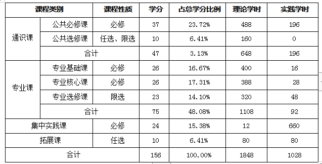 (二)毕业学分:本专业要求修满156学分。学生完成人才培养方案规定课程,修满规定的学分,符合德、智、体、美等方面基本要求,准予毕业。