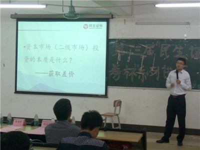 民生证券广州营业部投资顾问莫伟平在讲座中向我们介绍了证券投资的本质,指导我们如何在变化无常的市场上灵活应对,获取收益。通过主讲人莫伟平详细讲解投资中的基本分析和技术分析,让学生们学到了许多关于股票投资的知识。紧接着,莫伟平先生从K线分析,趋势分析,技术形态分析和技术指标分析这四方面指导我们如何更好的在实盘中操作。最后,他为我们推荐了由罗伯特.D.爱德华兹撰写的书---《股市趋势技术分析》,并与现场的同学进行了积极的互动和交流。