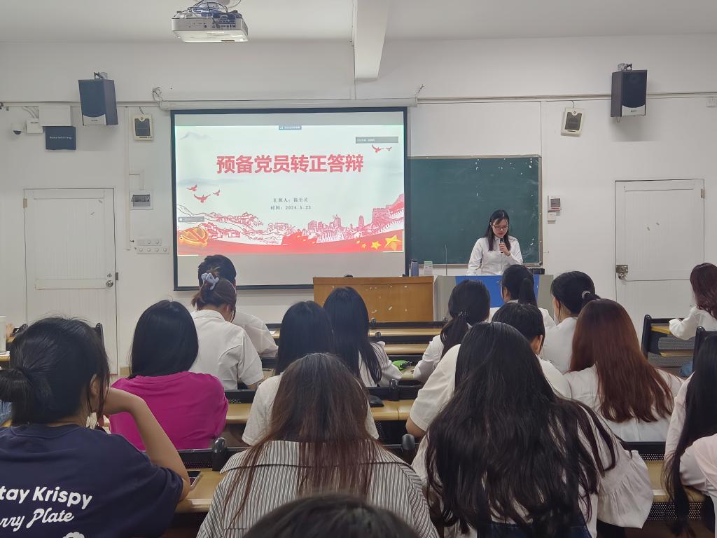转正申请人陈洁萍、郭钰璇等25名同志对自身在大学期间的思想、学习、工作、生活等方面的表现、进步、存在的问题和改正措施进行了个人汇报,并宣读了转正申请。他们表示,转正后会严格按照合格党员的标准要求自己。不断加强自身政治理论和党性知识的学习,提高自身政治素养,牢记全心全意为人民服务的宗旨,把人民放在心中最高位置。