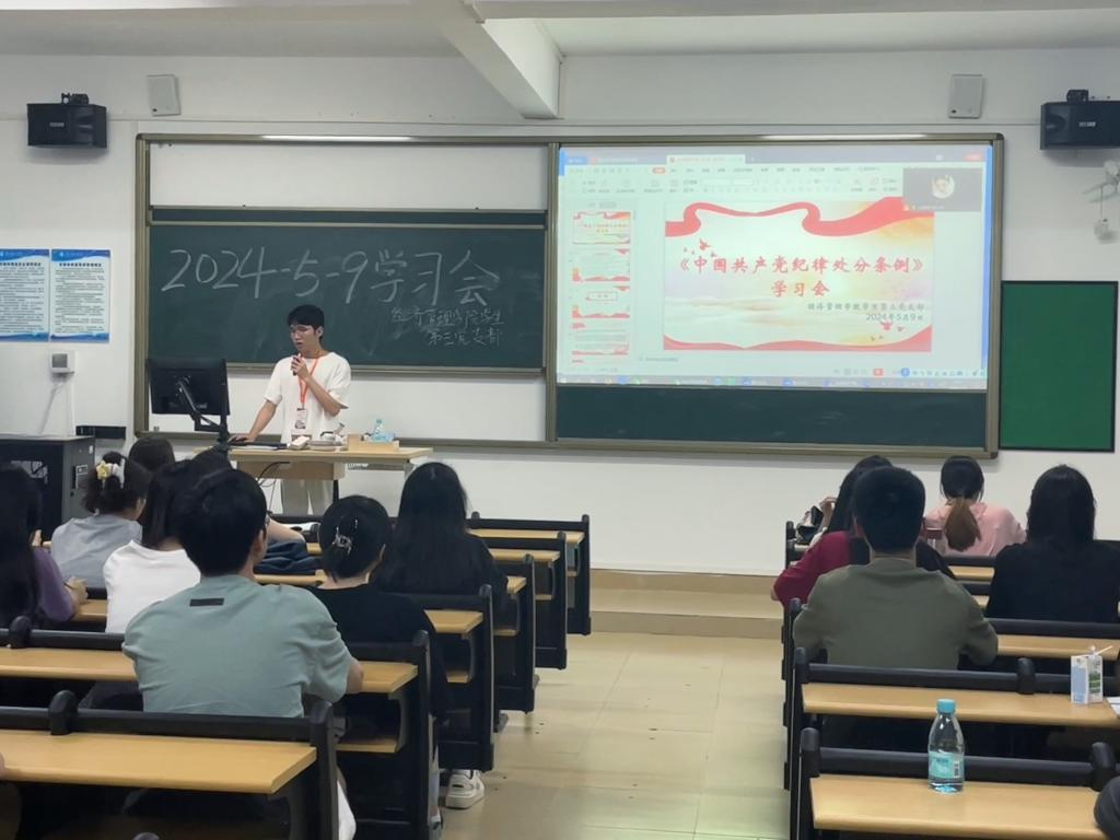 (通讯员:周颖)5月20日至5月22日,我院各学生党支部在7栋201、202、203、302教室召开《中国共产党纪律处分条例》学习会。通过各学生党支部集中学习,全体党员深入领会《条例》精神,全面掌握《条例》内容,严格遵守和执行《条例》规定。