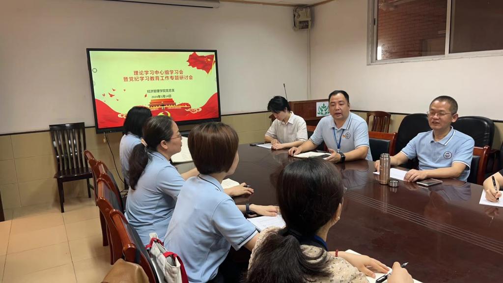 (通讯员:杜泽韩)5月14日,suncitygroup太阳集团党总支召开党委理论学习中心组扩大会议,深入学习贯彻习近平总书记关于加强党的纪律教育的重要论述,推动党纪学习教育入脑入心走深走实,部署学院党纪学习教育工作。suncitygroup太阳集团理论学习中心组成员、学院领导班子参加会议,各学生党支部书记、系主任、办公室主任列席会议。