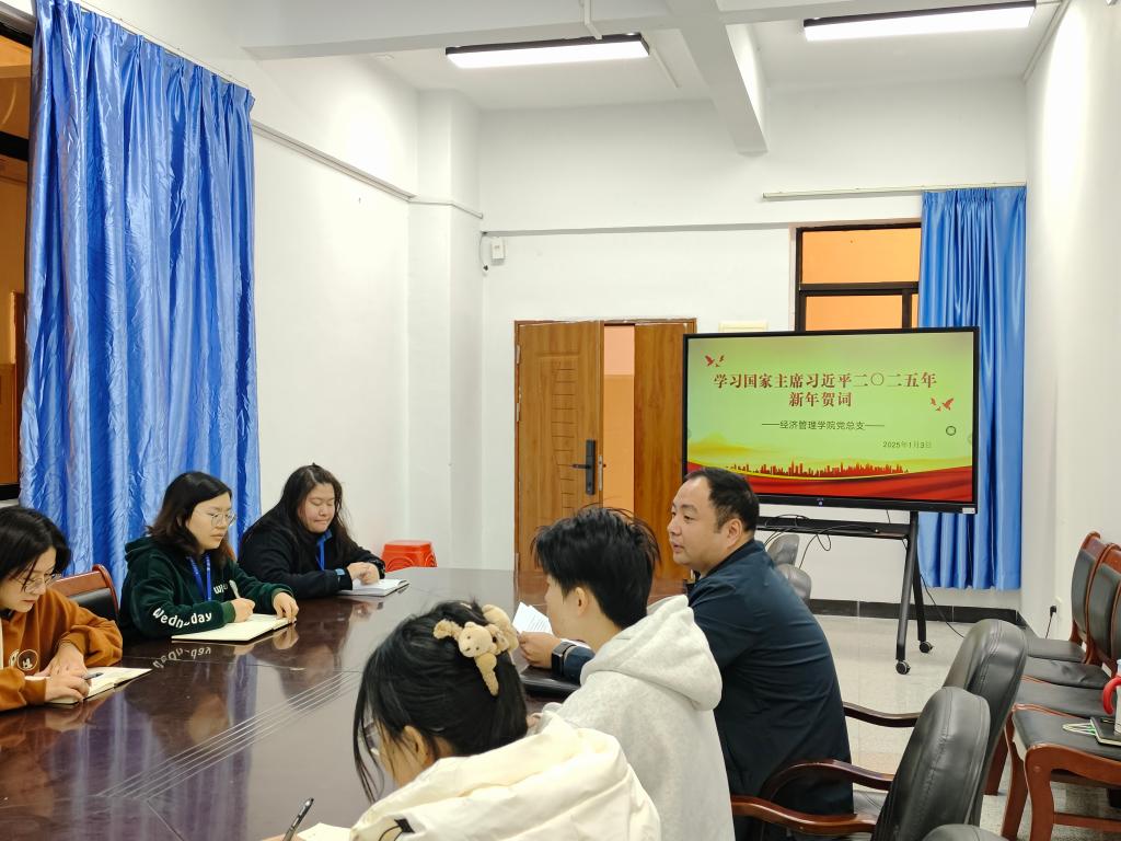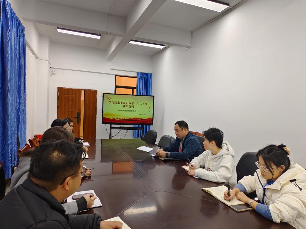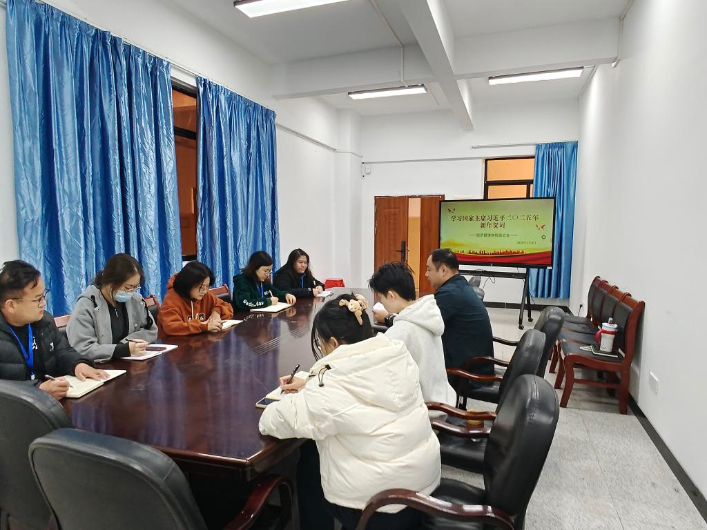 党总支书记彭康煜在总结发言中指出,新年贺词既回顾了奋斗历程和成就,又展望了发展目标和任务。他鼓励各党支部书记和支委要把学习新年贺词精神与学习贯彻党的二十届三中全会精神结合起来,与学院中心工作结合起来,切实统一思想和行动。比如,在教学中融入党的二十届三中全会精神,引导学生树立正确的价值观和人生观;在科研中贯彻落实党的二十届三中全会精神,推动学科发展与国家战略相结合。要以新年贺词为动力,发挥先锋模范作用,努力推动学院各项事业高质量发展。