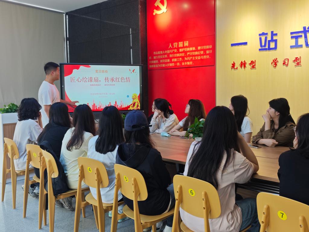 在制作过程中,党员们充分发挥创意,将红色元素巧妙地融入漆扇的设计之中。有的党员绘制了鲜红的党旗、璀璨的五角星等经典红色符号,表达着对党的无限忠诚与热爱;有的则以革命先烈的英勇事迹为创作灵感,用画笔讲述着一段段感人至深的故事,传递着对先辈的深切敬仰与缅怀。在“一站式”学生第九社区这个充满活力的平台上,党员们不仅亲身体验到了传统手工艺的独特魅力,更深刻领悟到了匠心精神所蕴含的深厚内涵。每一把精心制作的漆扇,都凝聚着大家的心血与汗水,承载着对红色文化的崇高敬仰和坚定传承。