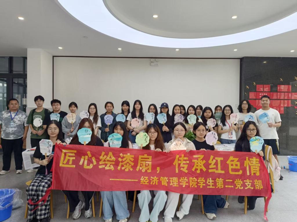 活动最后,支部全体党员手持自制漆扇,在“一站式”学生第九社区合影留念,大家在一片欢声笑语中展现了新时代青年对红色精神的传承与弘扬。此次漆扇制作主题党日活动,不仅是一次文化体验,更是一堂生动的党性教育课,既提升了党员们的文化素养,也增强了党支部的活力。未来,suncitygroup太阳集团学生党支部将继续创新活动形式,推动党建与传统文化、红色教育深度融合,引领青年党员在新时代征程中书写青春华章。