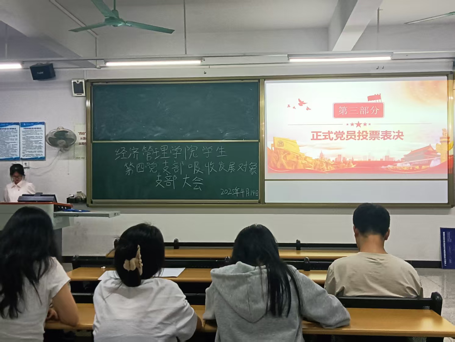 随后,发展对象们依次登上讲台,详细介绍个人学习和生活情况,分享了在成长道路上对党的理论的深入学习与感悟,讲述了如何在日常实践中以党员的标准严格要求自己,积极参与各项活动,用实际行动诠释着对党的忠诚与热爱。他们的发言展现出了积极向党组织靠拢的坚定决心和良好的精神风貌。在投票表决阶段,正式党员们根据发展对象的综合表现,以无记名投票的方式,公正、严肃地为每一位发展对象进行表决。
