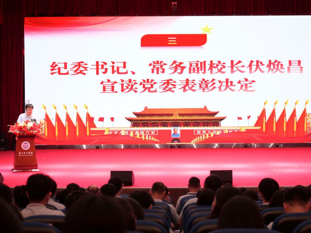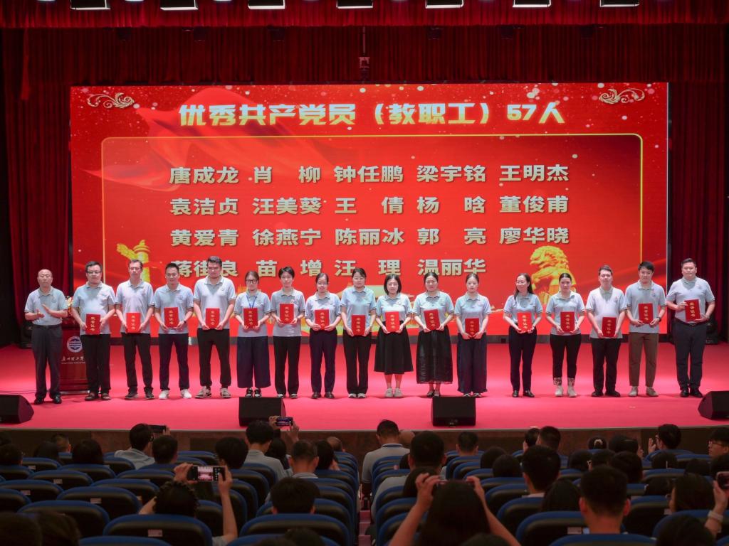 大会在庄严的中华人民共和国国歌奏唱声中拉开帷幕,全体与会人员肃穆而立,以激昂歌声向祖国致敬。随后,与会党员重温入党誓词,坚定初心使命。常务副校长伏焕昌宣读了党委表彰决定,对在党建工作中表现突出的集体和个人予以表彰。此次大会共表彰优秀党务工作者17人、优秀共产党员(学生)31人、优秀共产党员(教职工)67人。