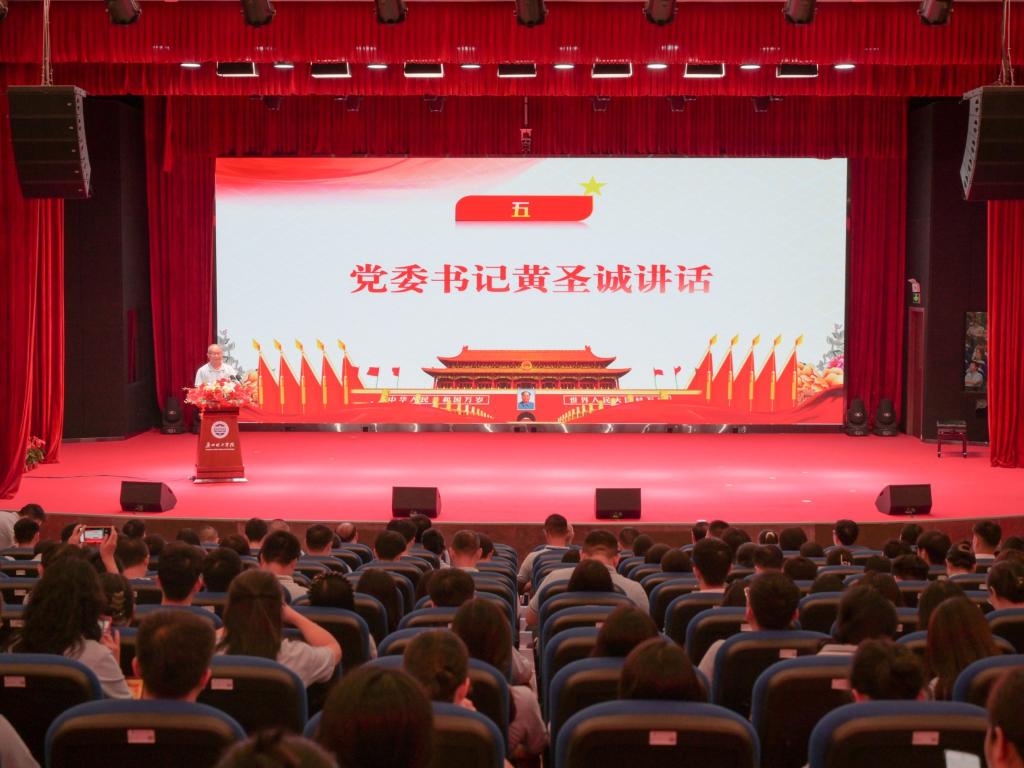 党委书记黄圣诚在大会上发表了重要讲话,强调各党总支、党支部作为学校党建工作的重要基石,肩负着凝聚力量、引领方向的关键职责,他要求广大党员时刻牢记自己的身份与使命,紧密地团结在以习近平同志为核心的党中央周围,坚定不移地把思想和行动统一到党中央的决策部署上来。