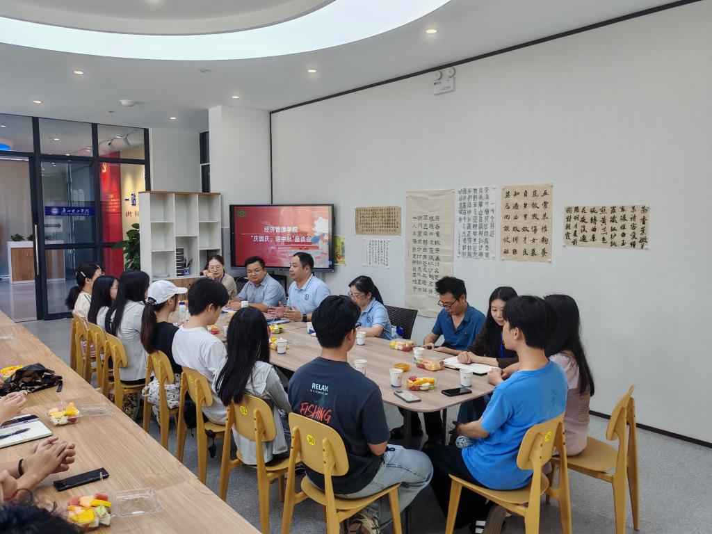 座谈会上,学生代表们围绕中秋文化内涵与国庆爱国主题踊跃发言,分享个人感悟,并结合实际校园生活,在生活设施、学习教学、管理服务等方面提出了多项建设性意见。学院领导和辅导员们认真倾听、细致回应,现场交流氛围热烈。