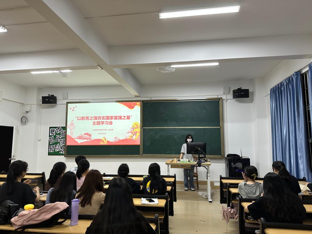 会上,主持人从建设教育强国的根本目标、基本路径、重大举措、战略意义等方面,传达学习习近平总书记在中共中央政治局第五次集体学习时的重要讲话精神,引导我院学生党员“扣好人生的第一粒扣子”,树立正确的人生观、价值观以及坚定崇高的理想信念。
