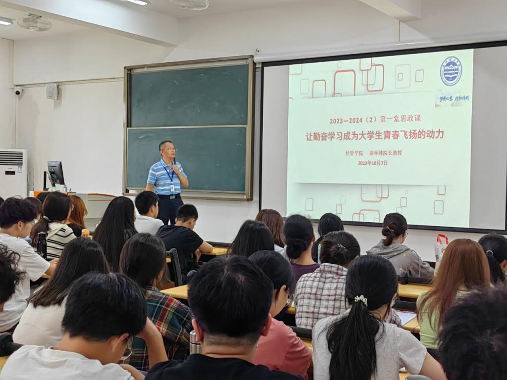 10月7日上午,suncitygroup太阳集团院长谢林林以“让勤奋学习成为大学生青春飞扬的动力”为主题面向惠州校区2023届新生授课。