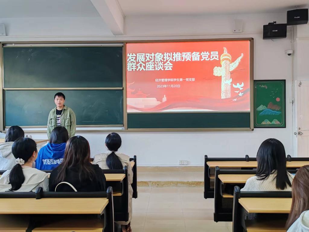 (通讯员:范莹莹)11月20日,我院党总支部秉着选拔和培养具有党性原则、组织纪律和忠诚意识的优秀人才,组织各学生党支部在7栋303、305、222、311、315、402召开发展对象拟推预备党员征求群众意见座谈会。本次座谈会有16名发展对象,他们是通过各学生党支部严格把关,综合各方面推优选出的预备党员候选人。112名各支部正式党员及相关群众参加此次会议,会议由各学生党支部书记主持。