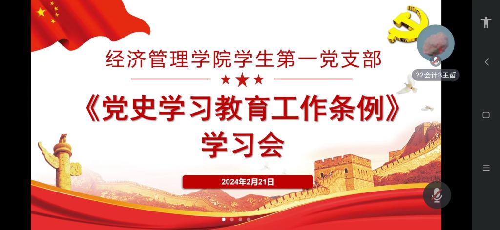 (通讯员:徐嘉慧)2024年2月21日,suncitygroup太阳集团学生各党支部组织开展了《党史学习教育工作条例》学习会,各支部全体成员集中学习《党史学习教育工作条例》(以下简称《条例》)以及学习宣传贯彻《条例》的相关要求。
