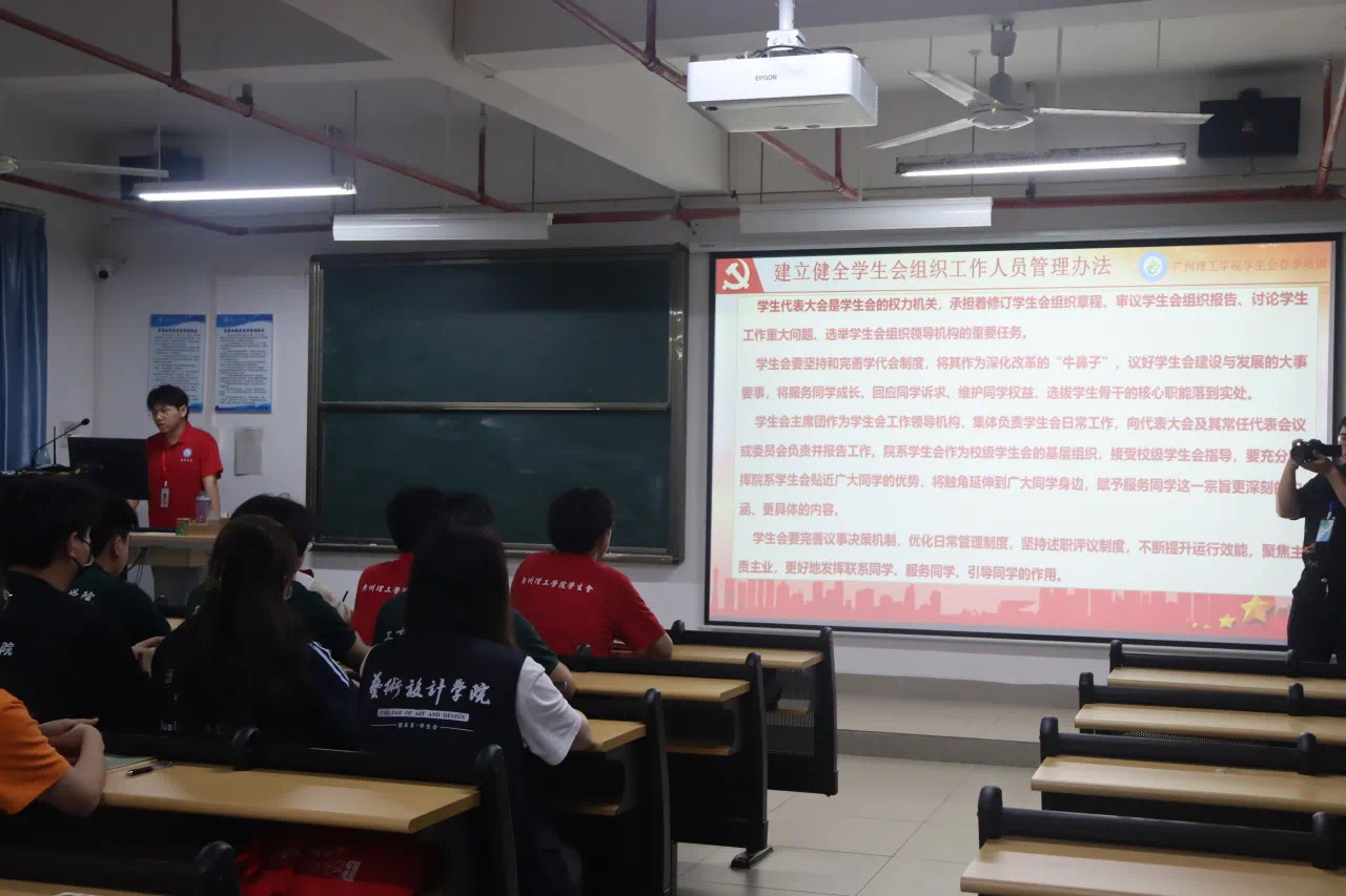 (通讯员:李晓琳)为进一步提高本学年学生会组织的工作质量与效率,推动广州理工学院全面优化发展,我校学生会于2024年4月9日20:30在13栋709教室召开广州理工学院校、院学生会全体工作人员春季培训会。suncitygroup太阳集团学生会主席团全体成员参与本次会议。
