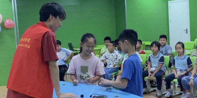 见面会伊始,为了让孩子们对本次夏令营活动有更深入的了解,广州理工学院仲夏心动实践团的成员们一一进行了自我介绍,并为夏令营的同学们带来了精彩的才艺表演,其中,刘如军老师的魔术表演深受同学们的喜爱,同学们欢欣涌跃,欢声笑语此起彼伏,拉近了彼此的距离。