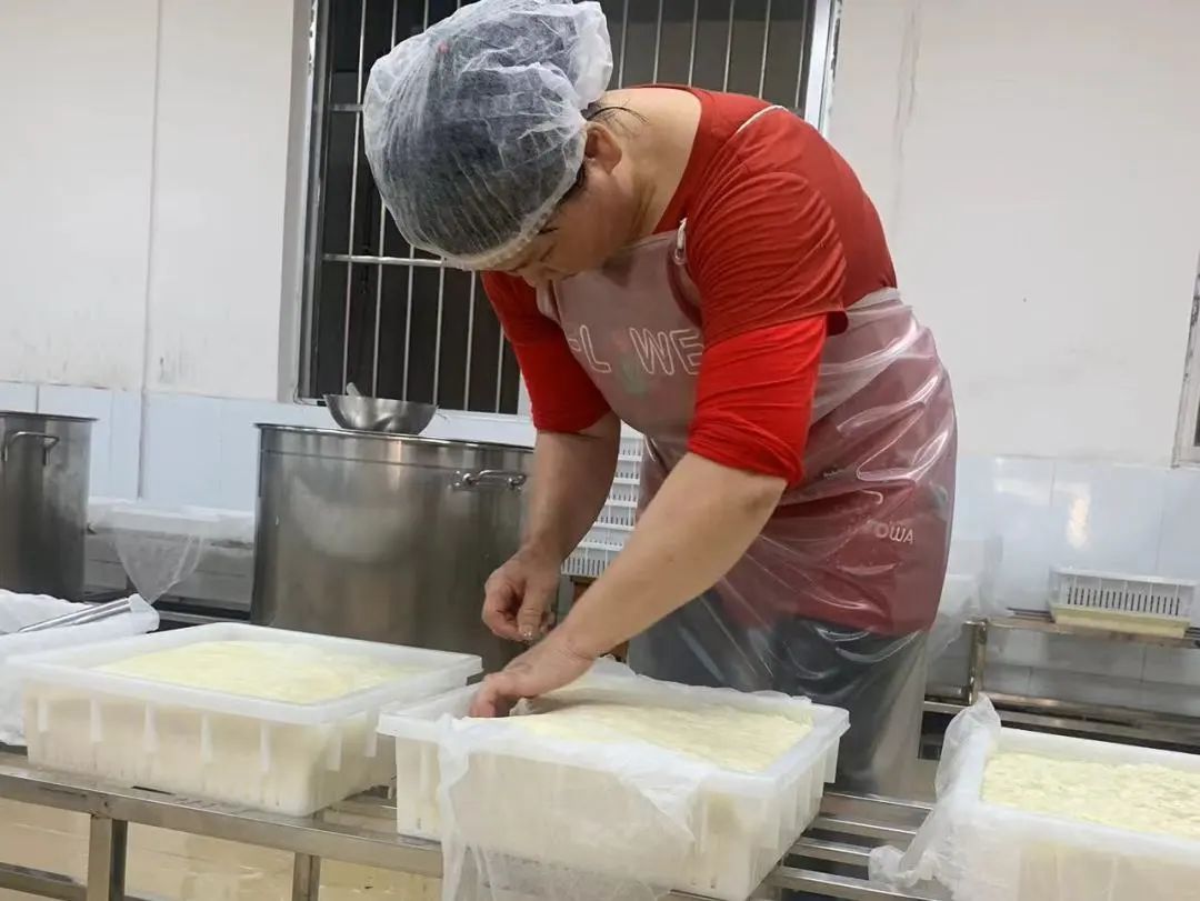 (通讯员:李雅佳)7月8日下午“粤兴文创突击队”在参观完工厂后,受邀到壹号绿色食品有限公司的豆腐工坊内参观了完整的豆腐生产流程并在老师傅的带领下亲手操作。