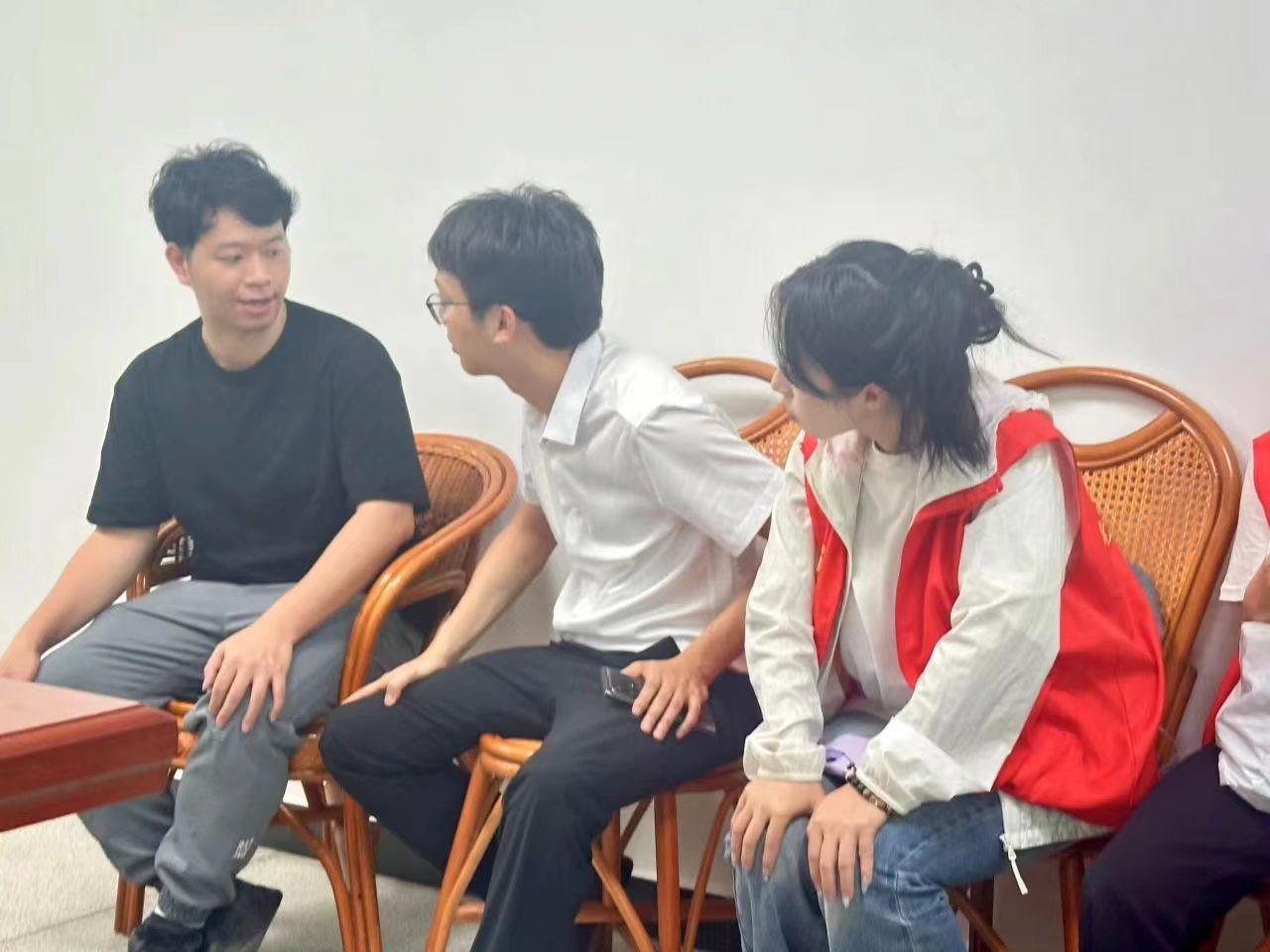 接着,实践队员们分享了这几天在四都镇深入调研的所见所闻所感,从田间地头的实地考察,到与村民们的亲切交流,再到对当地面临的挑战的深入分析。同时,他们也提出了自己心中的疑惑,包括如何更好地促进农民增收、解决农业人才短缺和推动全域综合整治等关键问题。面对队员们的提问,骆副镇长展现出了极高的专业素养和耐心。她逐一解答了大家的疑问,不仅从政策层面进行了解读,还结合具体案例进行了深入浅出的分析。整个访谈过程气氛热烈而融洽,不仅加深了实践队员们对四都镇农业发展现状的认识和理解,也为他们未来的学习和工作提供了有益的启示和借鉴。