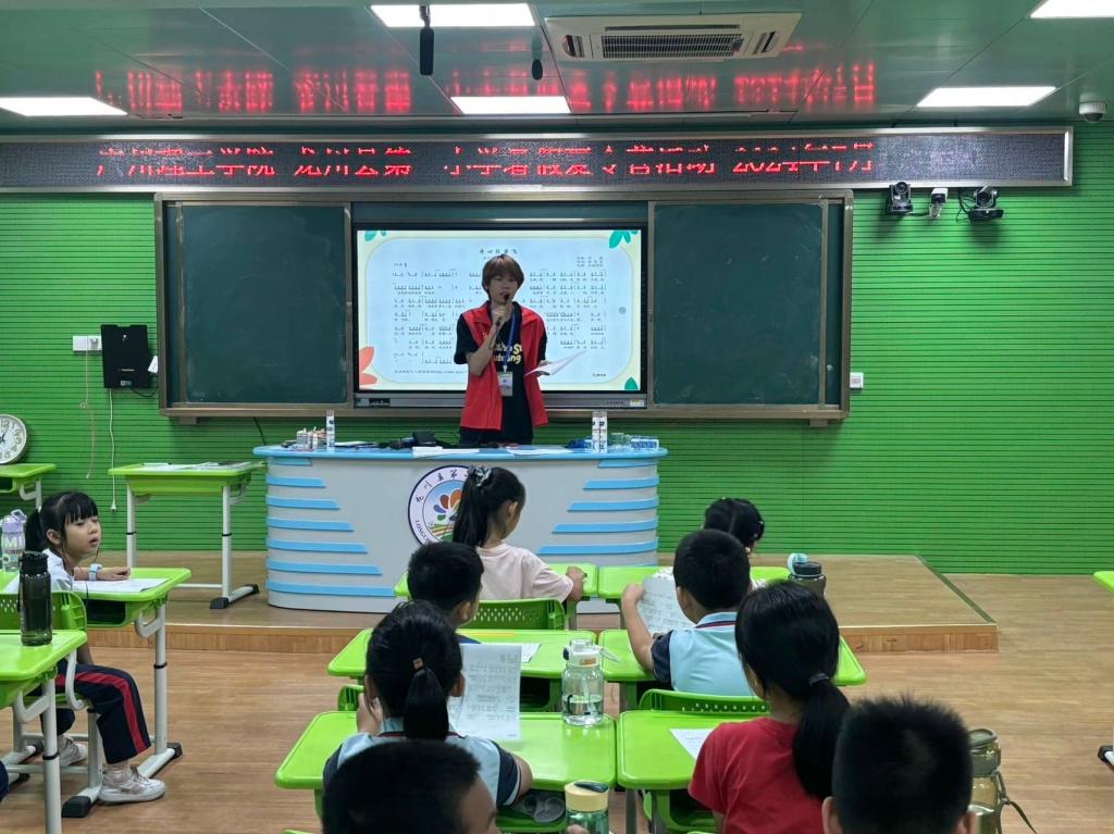 以美为基,以乐育人,为了培养音乐兴趣激发美育意识,在郭创杰老师的带领下,以互动形式合唱,学生们大展歌喉,童声嘹亮。