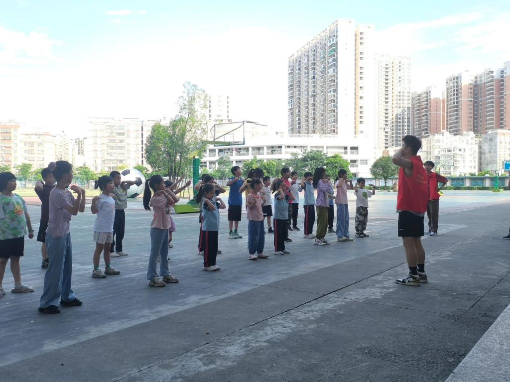 阳光体育我健康,昂首阔步共成长。为了提高学生们对体育的热情,谢雨聪老师开展了阳光体育课堂,寓教于乐,学生们在欢声笑语中体会体育乐趣。