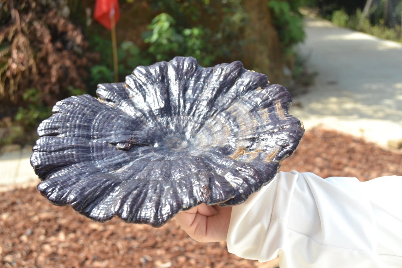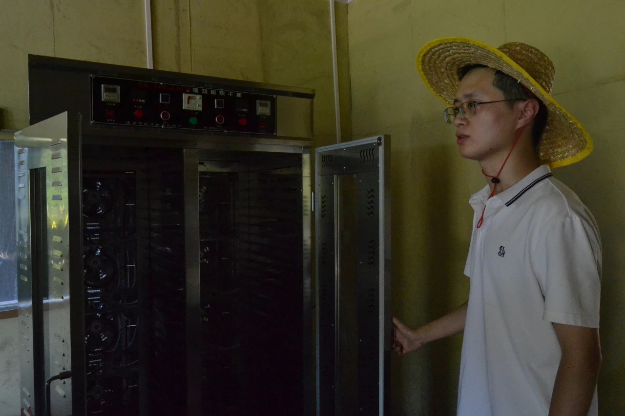 随后,刘添贤书记表示,当地工作人员每天都会进行灵芝维护,观察其生长情况,保证灵芝具有良好的生长环境。在湿度适宜的情况下,对灵芝质量进行严格把控;借助烘干机,保证灵芝干燥储存,确保零售灵芝100%高质量。在灵芝生产基地里,当地工作人员还安装了一套精细的自动报警系统,对灵芝进行严格监控。灵芝产品通过加工包装后,细坳镇村民可以利用直播带货形式把灵芝销往全国各地,扩大灵芝销售市场。