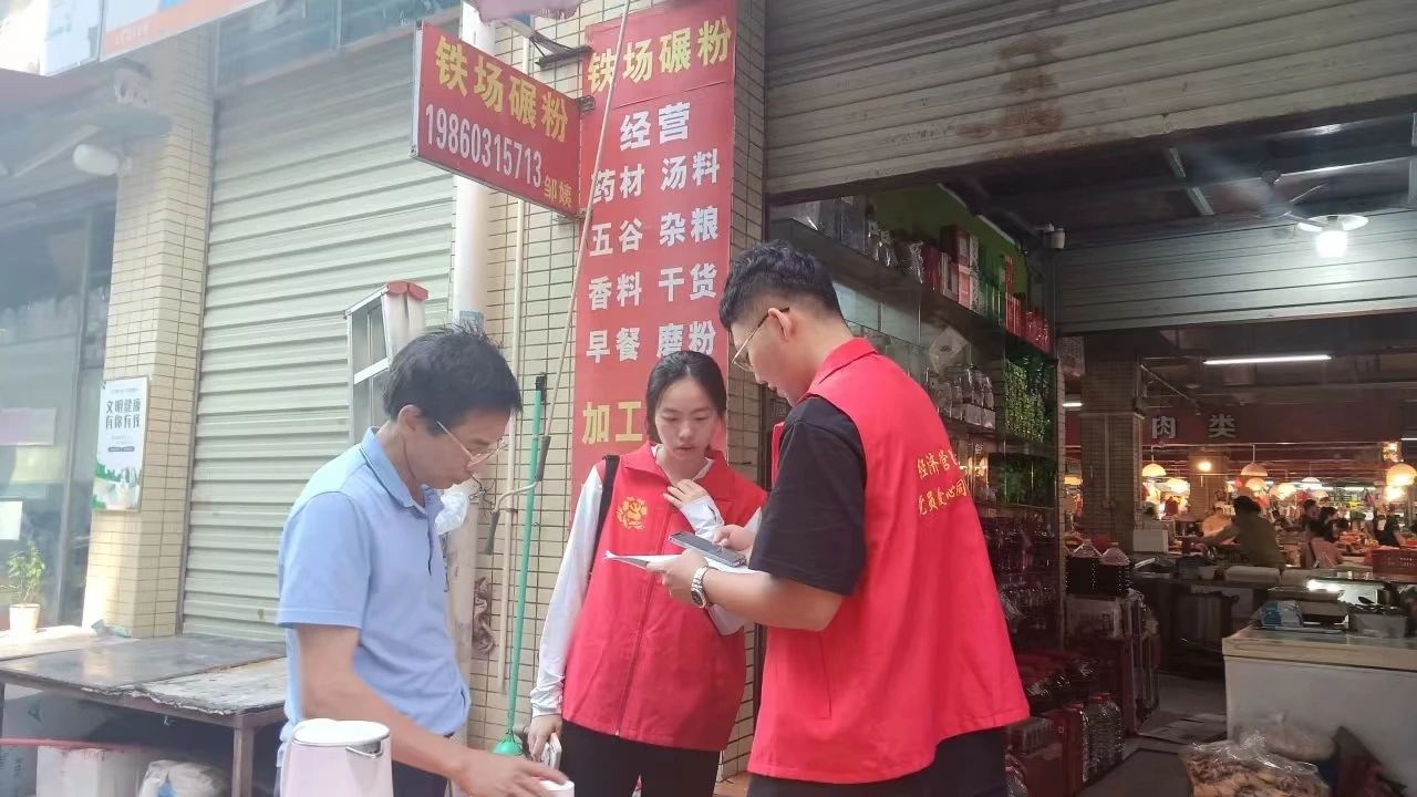 紧接着,在姬大为老师的引领下,我们走进班级展开宣传工作。学生们更明晰地了解国家资助政策和国家助学贷款的事项,让他们在追逐大学梦想的征程中增添了一份坚实的底气!下午时分,阳光依旧炽热,实践队员们前往了老隆镇农贸市场。市场里人头攒动,队员们手持调查问卷,礼貌而耐心地向每一位过往的商户和顾客说明来意,邀请他们参与问卷调查。队员们认真倾听受访者的回答,仔细记录下每一个宝贵的意见和反馈。尽管汗水湿透了衣衫,但他们的热情丝毫不减,专注于完成问卷调查工作。