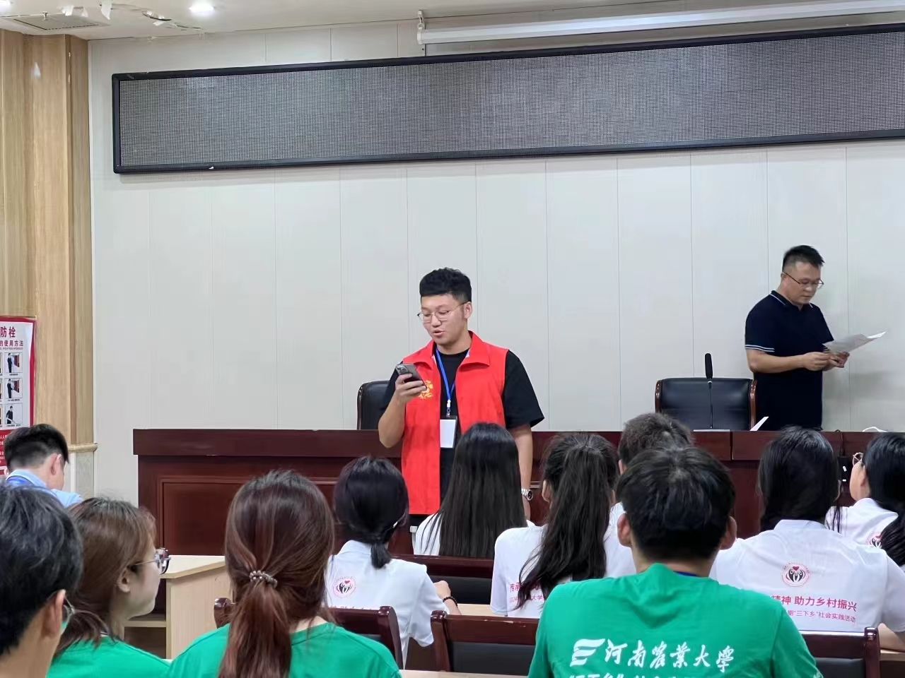 本次破冰是由安徽财经大学、凤阳县小岗村党委牵头,将各大高校团队进行分组,编制成临时社会实践活动班级,广州理工学院“筑梦小岗村”实践队分班属于小岗专项二期3班。破冰行动会议由安徽财经大学专任教师吴军主持。班级破冰行动主要分为两个部分组成,第一部分由班级里各个实践队队长上台介绍本队伍情况,我校实践队由张佩莹队长上台介绍。