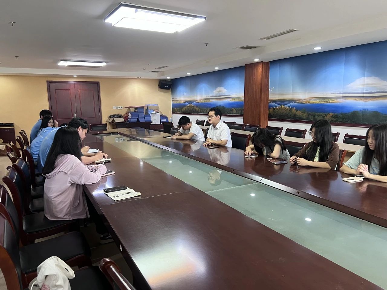 田间劳作结束,实践队成员与凤阳县小岗村博士工作站负责人雷松林开展座谈会。在座谈会期间,雷松林博士给实践队员讲述了自身经历和博士工作站建立的契机。实践队员积极向雷松林博士提问学习,我们了解到了乡村振兴的关键在于人才,而博士工作站的建立,也切实的为凤阳县小岗村的发展输送了精准的专业性人才,助力了凤阳小岗村的乡村振兴。不仅如此,雷松林博士还与实践队员分享了凤阳小岗村的发展模式是“以农为主、扩大二产、发展三产”,力争把一产做大、二产做强、三产做优。
