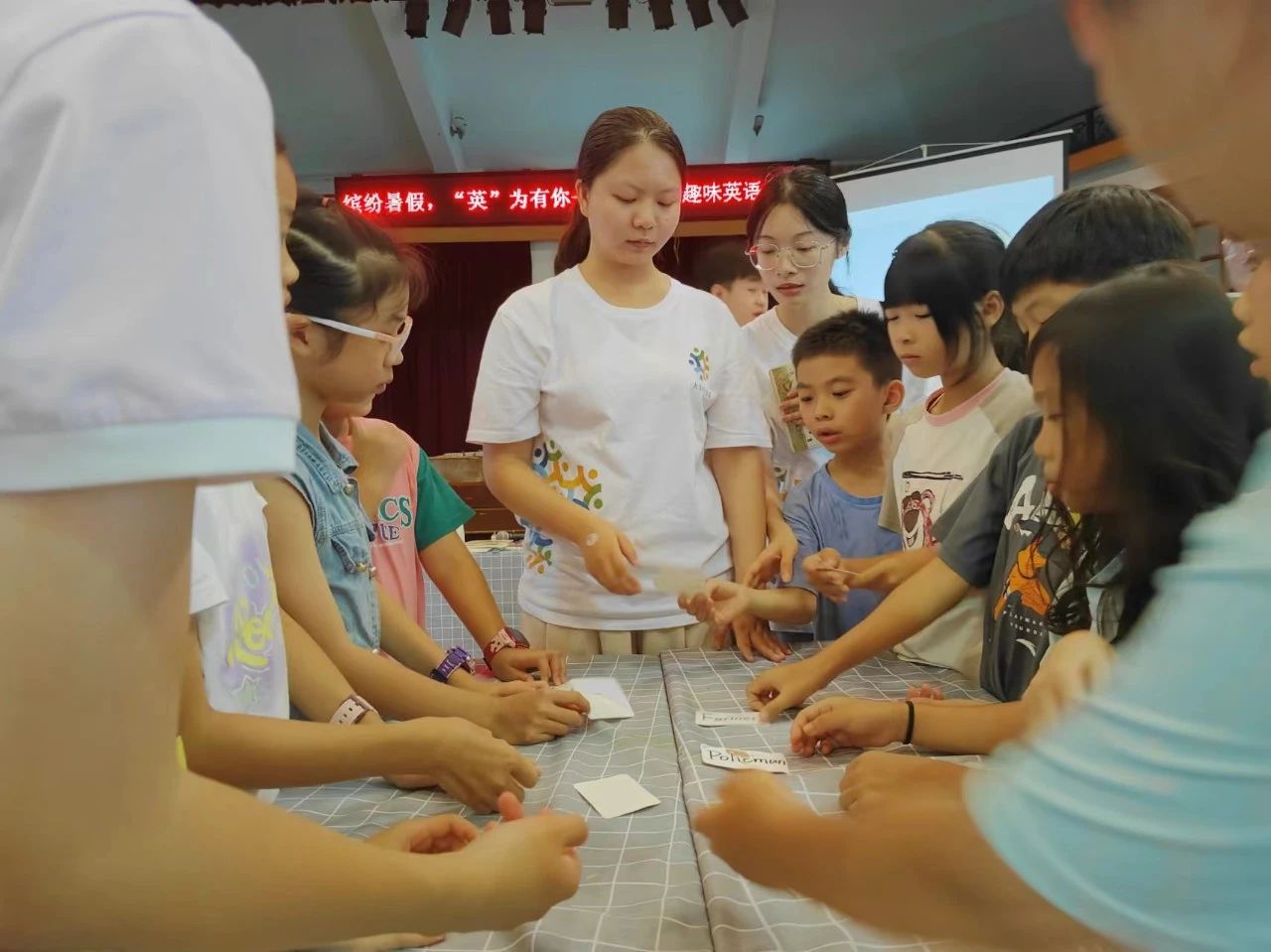 (通讯员:黎晓君、陈晓明)课程开始,团队成员张尔阳介绍了此次趣味英语课的流程,主要分为寻找小纵队队员、小队自我介绍、游戏闯关和颁奖四个环节。听到游戏环节,小朋友们非常激动,一时间,课堂上的讨论声此起彼伏,欢声笑语也布满了整个课室。