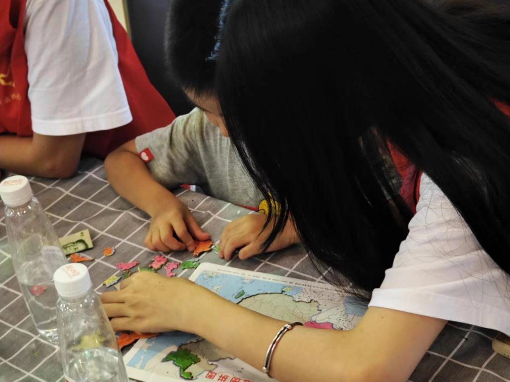在此次活动中,团队成员郭正阳利用多种教学资源和手段,带领学生们深入了解了中国的山川湖海等自然景观。例如,通过让小朋友们自主拼图的方法熟悉中国的版图和行政区划,同时向小朋友们提问,使得他们能在独立思考中更加深入的了解中国各地的地理知识。团队成员郭正阳使用多媒体教学的方法牢牢抓住了小朋友们的注意力,使他们能够通过具象化的方式学习到更多的地理知识,以此更好地了解中国风土人情。