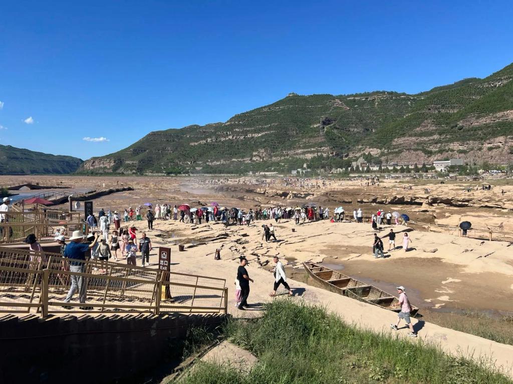 队员们沿着河岸走去,只见黄河之水在这狭窄的峡谷间肆意奔腾,时而激荡起白色的浪花,时而涌动着阵阵波涛。步入瀑布下游的广阔河滩,眼前豁然开朗。无数石块散落其上,大小不一,形态万千。它们经年累月地承受着黄河水的冲刷与雕琢,变得圆润而光滑,仿佛每一块石头都在诉说着自己的故事,承载着历史的厚重与沧桑。