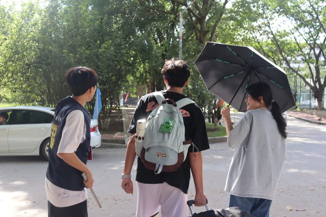 在迎新报道现场,新生与家长们带着对新校园的好奇,探索校园的美丽景色,迎新志愿者不断穿梭在各个地方,接待、引路、搬运行李,以最热情的态度迎接每一位来到广州校区的新生,为新生答疑解惑。