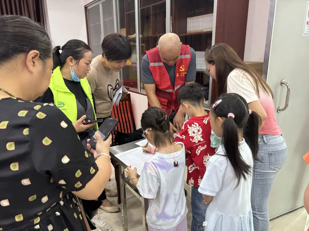 广州理工学院健康知识宣传队的志愿者们分发了消防安全调查问卷,通过问卷形式帮助孩子们和家长了解消防安全知识和自我保护方法。问卷内容涵盖基本消防常识和紧急应对措施,有助于强化他们的火灾安全意识。