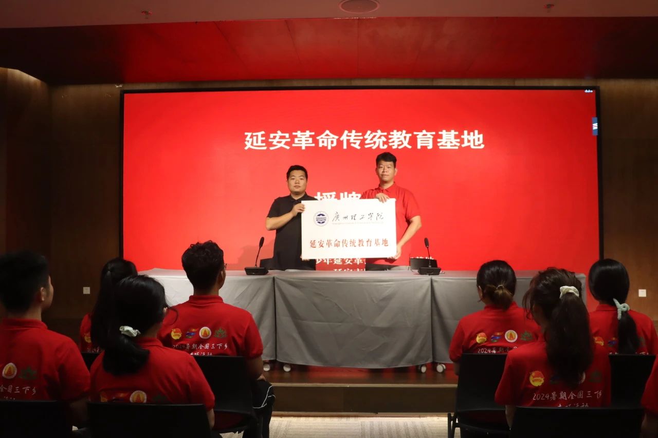 为了进一步发挥“资源共享、互联互动、合作共赢”的校地共建引领作用,进行赓续红色血脉,助力圣地发展的活动,实践队前往全国青少年延安革命传统教育基地,举行了意义非凡的挂牌仪式。这一举措不仅是对红色血脉的赓续,更是对圣地精神的传承与发扬。不仅搭建了广州理工学院与教育基地之间的合作关系,更为青年学子搭建了一个理论与实践相结合的学习平台。这一平台将成为广州理工学院青年学生深入理解红色革命历史、感悟延安精神的宝贵场所,激励他们将理论与实践相结合,为实现中华民族伟大复兴的中国梦贡献青春力量。