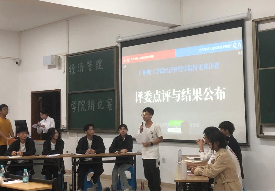 辩论赛在紧张而有序的氛围中进行。正反双方辩手围绕“当代年轻人应该活得更现实还是更理想”的主题展开了激烈的辩论。辩手们引经据典,逻辑严密,言辞犀利,充分展现了经管学子的风采。21级经管辩论队的师兄在点评时提出,辩论赛是“说服第三方的艺术”,强调辩手们需要通过逻辑和情感的结合去影响和说服评委和观众。