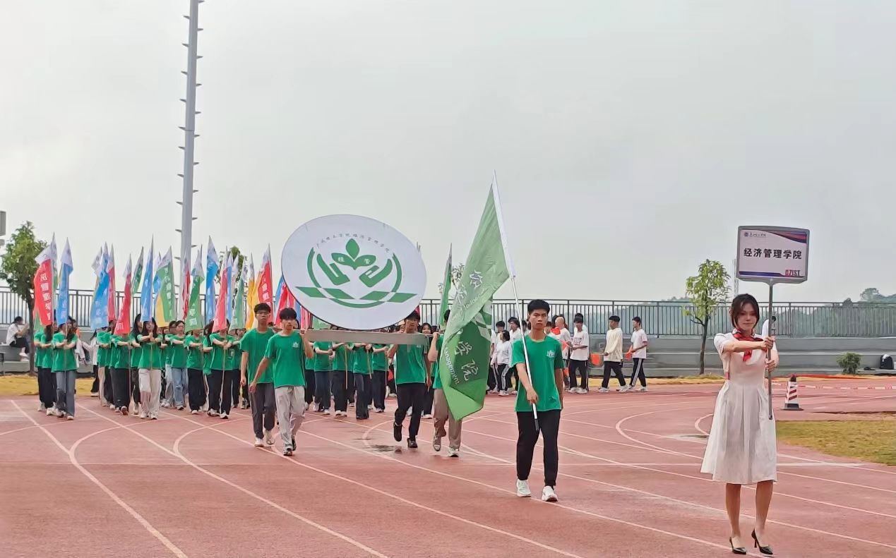 首先是方阵入场。随着激昂的运动员进行曲响起,国旗护卫队昂首挺胸,高举着鲜艳的五星红旗和校旗,步伐坚定有力地步入会场。随后走来的是我院方阵,“青春飞扬,经管最强,披荆斩浪,扬帆起航。”响亮的口号展现我院的精神风貌,相信我院在这次的校运会能够再创佳绩。