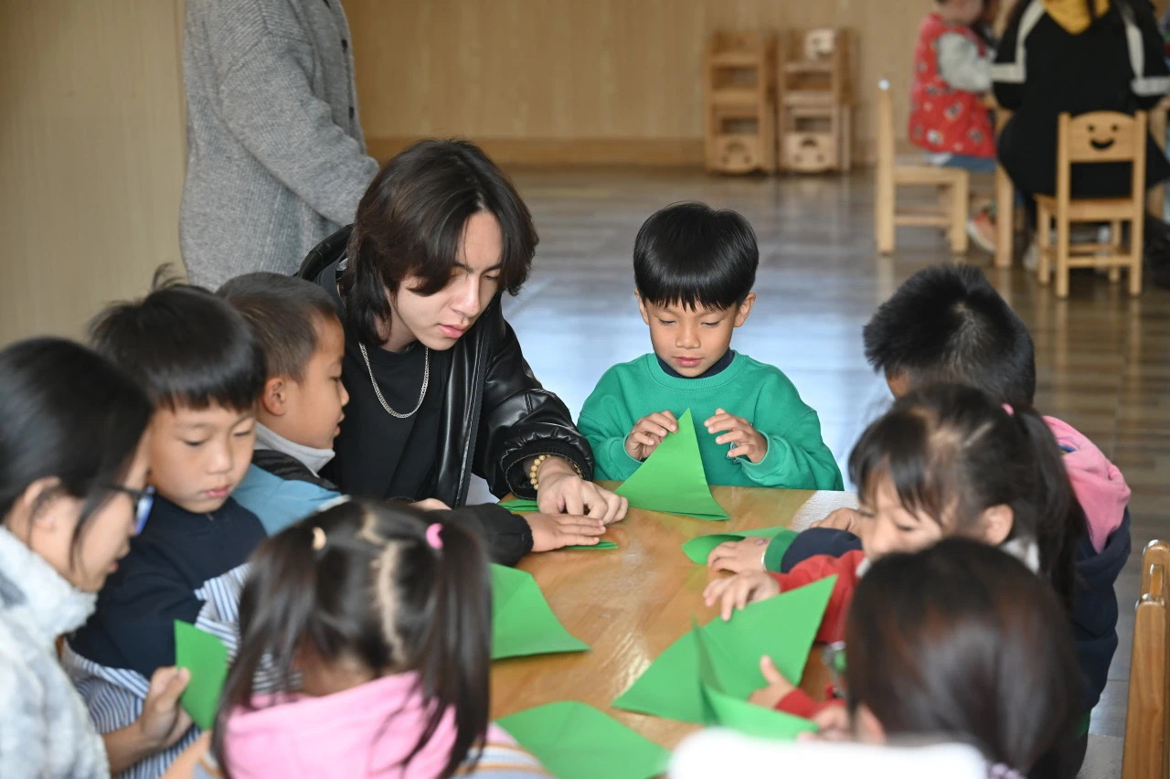 (通讯员:戴红韶、陈晓明)2025年3月19日上午,广州理工学院suncitygroup太阳集团与音乐舞蹈学院赴白云区常春藤实验幼儿园,携手开展了一场充满温情与欢乐的雷锋月志愿活动。在活动现场,志愿者们带领小朋友开启有趣的折纸环节。孩子们在志愿者们的指导下,用绿色和红色的彩纸精心折成雷锋帽,还使用打孔机制作星星装饰,将其粘贴在帽檐周围。他们专注的眼神配合着灵巧的小手,展现出对雷锋精神的初步理解。最后,在音乐舞蹈学院志愿者们的专业指导下,孩子们学唱起经典红歌《学习雷锋好榜样》。纯净童声如破土新芽,通过音符传递着对楷模的敬意。随着旋律流淌,雷锋精神化作春雨浸润童心,友爱互助的种子在稚嫩心田间悄然萌发。