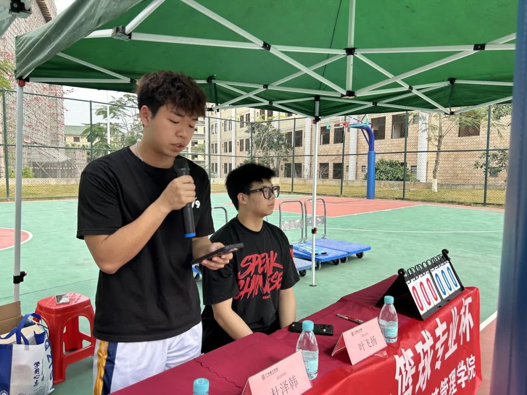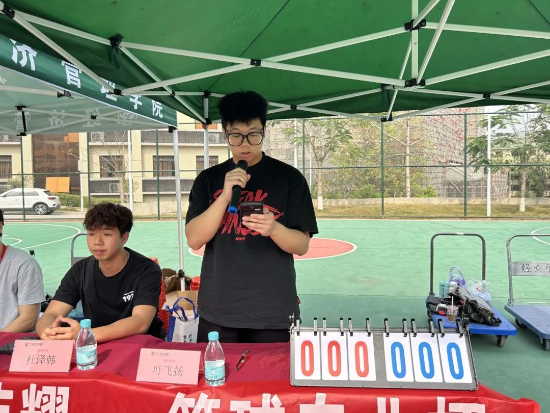 2025年3月27日下午,我院联动工商管理学院举办‘经’彩对决,‘工’赢荣耀篮球赛在广州校区篮球场拉开帷幕。运动员代表承诺将以饱满的热情、昂扬的斗志投入比赛,尊重对手、尊重裁判,赛出风格,赛出水平,用汗水诠释‘经’彩对决,‘工’赢荣耀的精神!裁判员代表郑重宣誓将严格遵守竞赛规则和裁判员纪律,恪守职业道德,公正裁决、严肃认真,确保赛事顺利进行!
