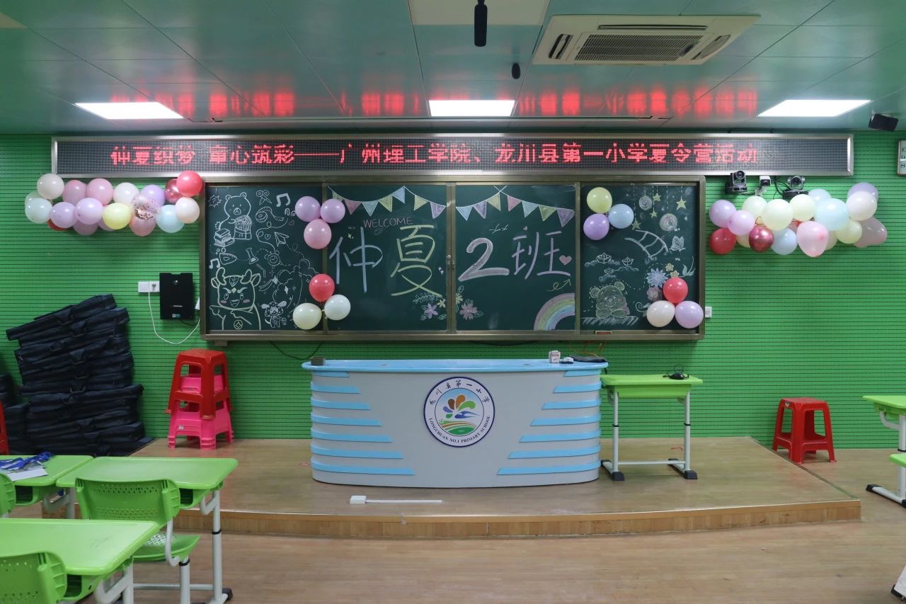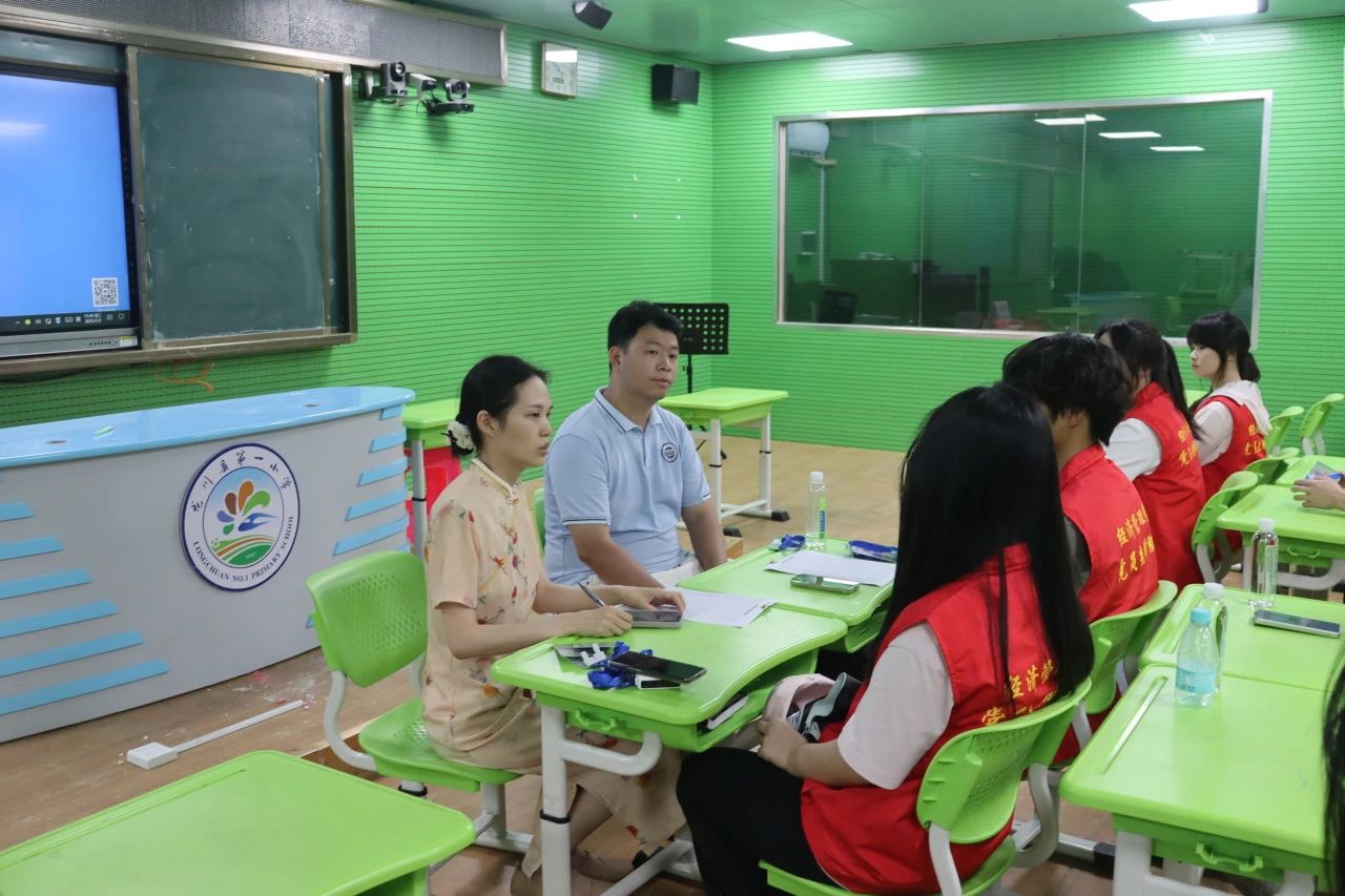 当“龙川”的路标映入眼帘,我们内心深处的责任感与探索的激动情绪交织涌现。我们未作片刻休息,便直奔此行的教学主阵地——龙川第一小学。踏入校园,眼前所见是朴素而充满活力的景象。我们记录着对这片土地和孩子们的初步了解。在行程中,与龙川第一小学经验丰富的教师团支部书记黄慧婷开展的交流座谈堪称一堂珍贵的实践课程。座谈中,黄书记毫无保留、热情洋溢地分享了其深耕学校管理与教育教学领域沉淀的丰富经验和独到深刻的见解。这场交流让我们对接下来的教学工作充满信心与期待。随后,带着丰富的收获与思考,我们投入了另一项重要工作——精心布置明天即将与孩子们初次见面的教室。