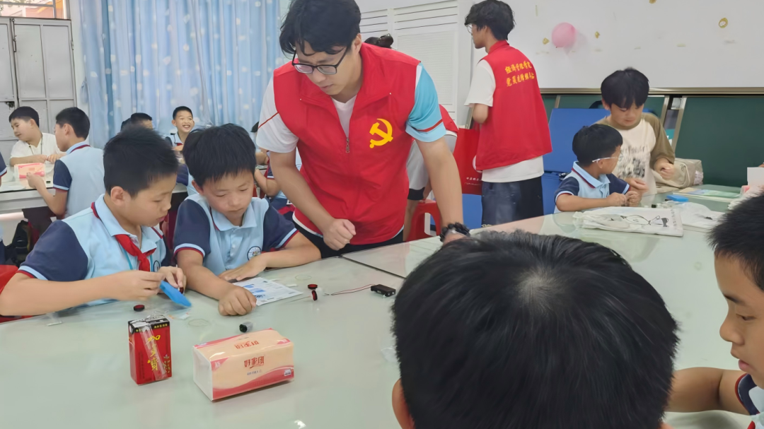 (通讯员:温凯晴、戴红韶)7月3日上午突击队员抵达龙川一小后开展点名工作,由队长梁铉率先进行自我介绍,并宣布趣味活动课堂的正式开始。接着,突击队员一一上台进行自我介绍,强调课堂纪律。在课堂氛围的渲染下,学生主动上台自我介绍,与实践队员热情互动。