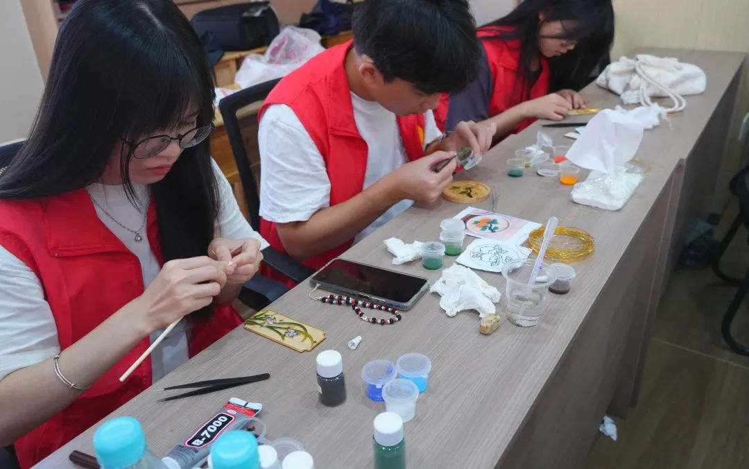队员们被同学们的精美绝伦作品深深吸引,发出了由衷的赞叹,直呼“看得我手痒痒”。随后,队员们不再只是旁观者,他们纷纷主动坐了下来,与同学们融为一体,共同投入到手工创作的奇妙世界中。