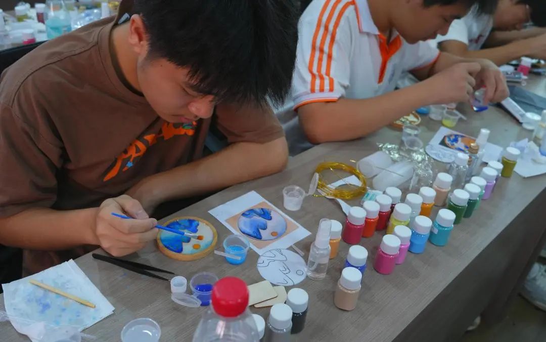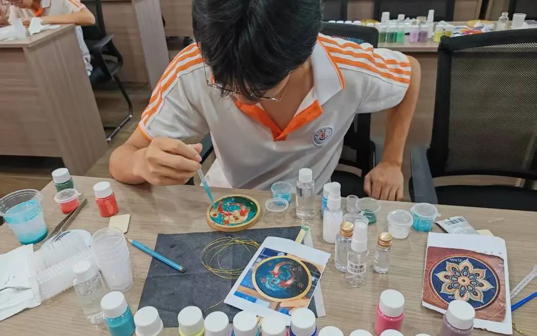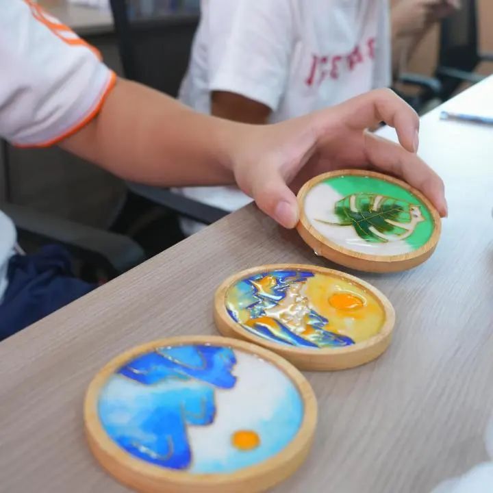 原本空白的杯垫和书签在同学们的手中逐渐焕发出别样的光彩,每一份作品都承载着他们独一无二的创意和努力,展现出青春的活力与智慧。