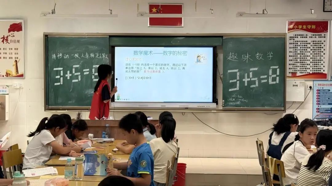 突击队员精心准备了一系列精彩纷呈的数学小游戏,如“穿过A4纸”、“读心术”、“1-30”等。通过精彩的演示与互动,巧妙地调动起课堂氛围,激发学生们的学习热情,让他们更加积极主动地投入到课堂学习中。