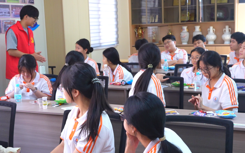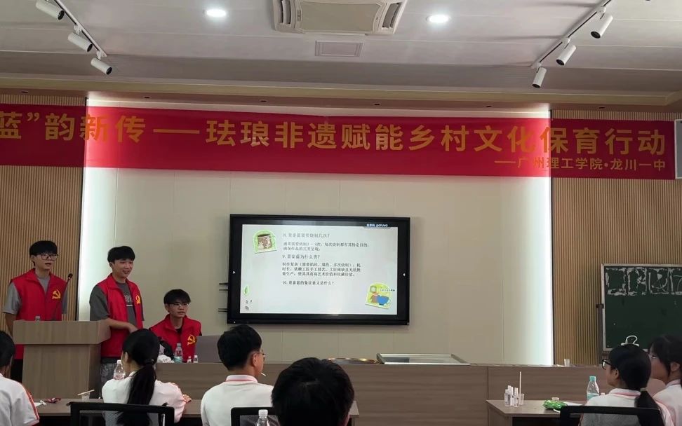 为了让课堂更加生动有趣,队员们还精心准备了知识问答游戏。问题涵盖掐丝珐琅的历史、制作工艺等多个方面。同学们热情高涨,积极踊跃地回答问题,现场气氛十分活跃。答对的同学还获得了相应的奖励,这进一步激发了大家的学习热情。此外,课堂上还进行了几个趣味游戏,同学们纷纷积极参与,欢声笑语回荡在教室里。