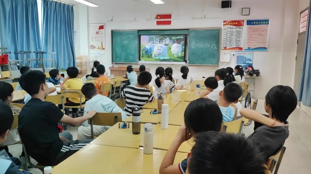 突击队提前准备了击鼓传花、你画我猜升级版等多个小游戏。学生小组在合作与竞争中笑闹,不知不觉就拉近了距离。游戏中轻松的氛围让学生彻底放松,享受单纯的快乐。学生青春的活力如春日繁花般盛放,少年们以无限热情投身游戏,每一次欢笑都是生命最美的绽放。临近课程尾声,突击队员选择《平博士密码》中“与蜂共舞”和“进步的动力”两个视频给学生观看,在休息的同时为学生科普了知识。视频中的角色反差带来不少趣味,用生活化场景,把磁铁“同性相斥、异性相吸”的科学原理变得简单易懂。视频中各种脑洞尝试特别有趣,朋友相处的场景和现实中相似,让学生具有代入感。