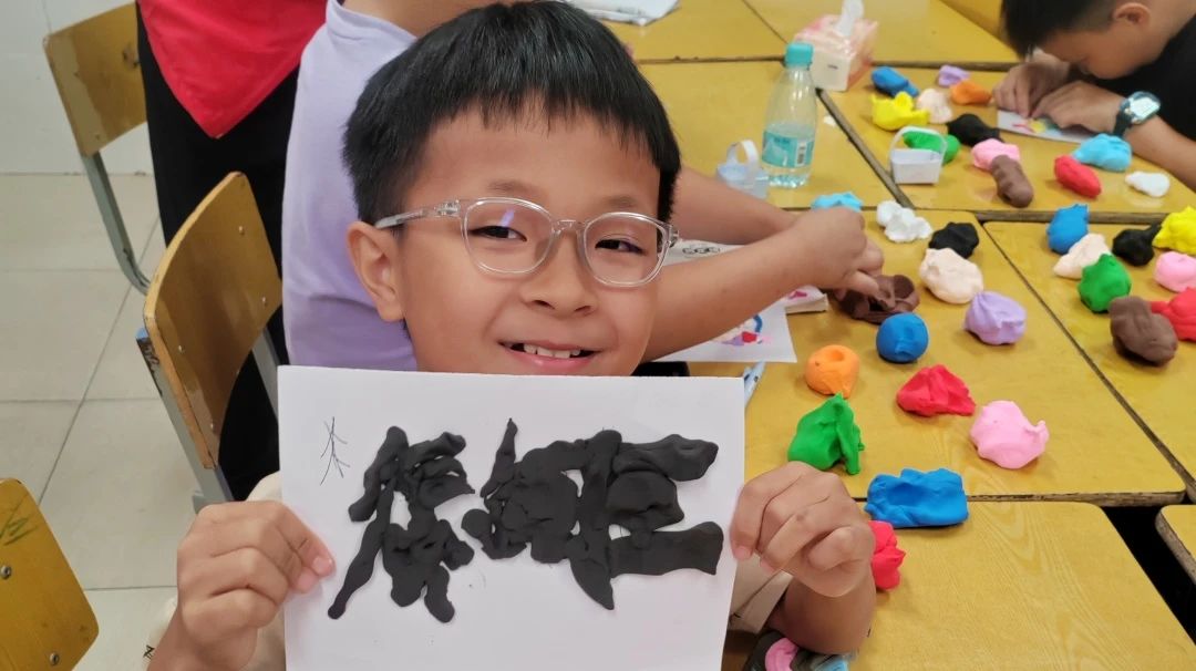 课程尾声,孩子们高举黏土作品,脸上洋溢着自豪。这场以黏土为媒介的创意实践,不仅让小朋友们感受到汉字的温度,更在他们心中播下文化自信的种子。