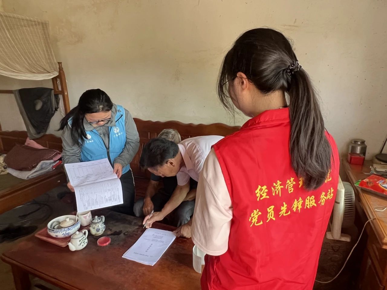 走访过程中,突击队队员来到了甘陂村——它是畲族少数民族聚居地。经深入走访调研,队员们了解到该村1800余名村民均为蓝姓,其中60岁以上老人逾200人,含多位80岁以上高龄老人及百岁老人,人口年龄结构呈现显著的长寿特征。通过与村民走访交流,队员们深入了解了村民的生活现状与需求,为助力乡村振兴、保护畲族文化奠定了基础。